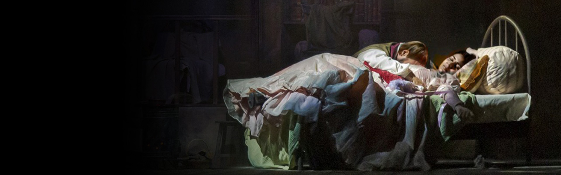 Set in Paris of the 1830s, the work tells a touching love story; a group of friends living a Bohemian life support themselves by creating art. The poet Rodolfo falls in love with the seamstress Mimì; the painter Marcello also has a tumultuous relationship with the singer Musetta. Despite everything, both couples try to enjoy life and love when they are happy. However, when Mimì's health is revealed to be very poor, Rodolfo struggles to accept that she will die from this illness. Rodolfo and Mimì separate, and months later, Musetta, realizing Mimì's condition has worsened, brings her to the house where Rodolfo and Marcello live. Rodolfo immediately takes her in and tries his best to restore her health. But it is too late. Right after declaring their love for each other, Mimì succumbs to her illness.